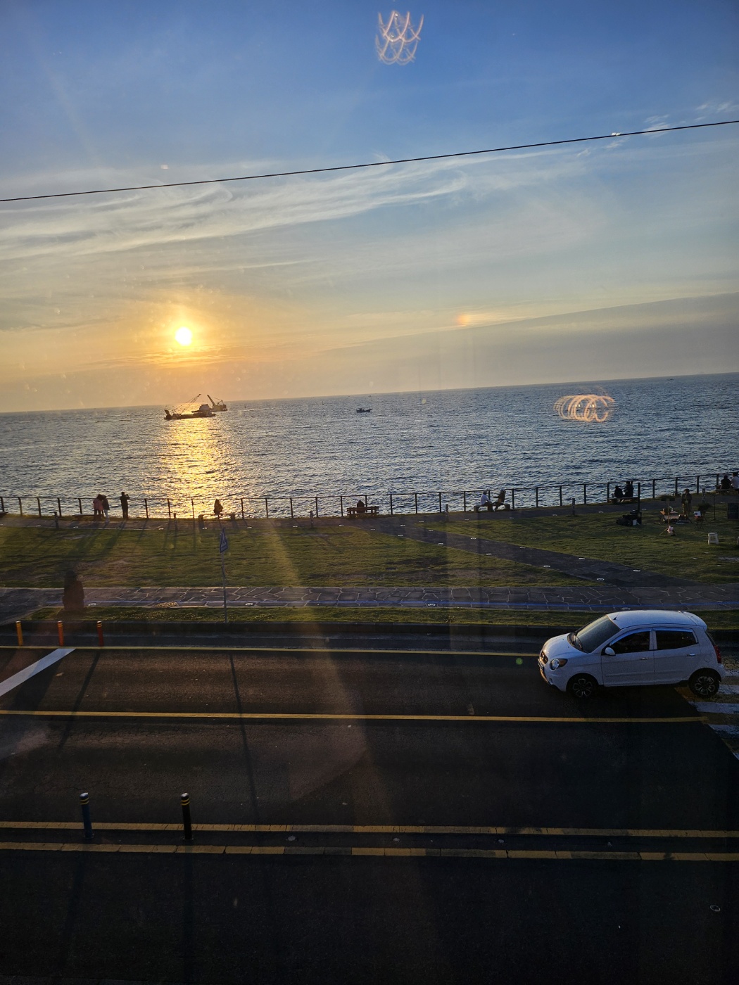 차창밖으로 펼쳐지는 푸른 바다와 낮은 지붕의 집들이 낯설게 느껴지며