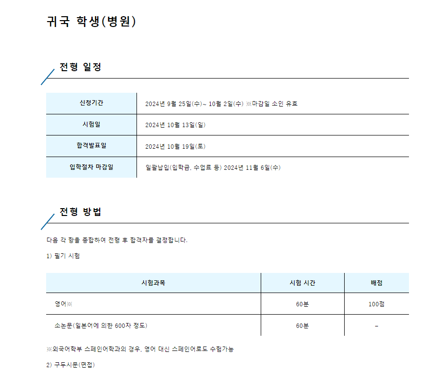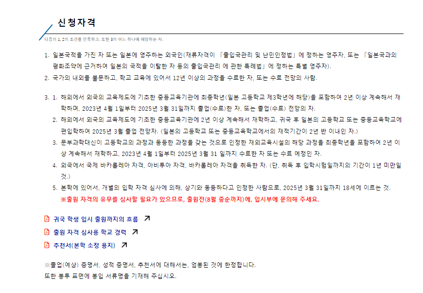 유학생 자격 수험생인지 아니면 귀국자녀로 입시를 봐야 할지 정보가 확실하지 않다.